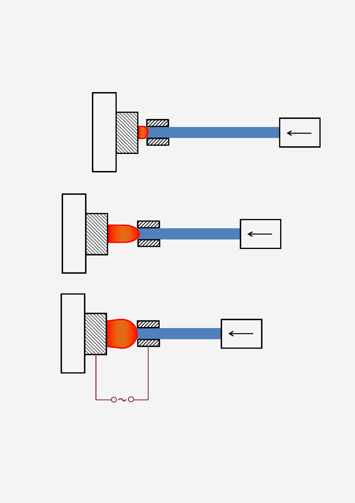 Das Elektrostauchen ist ein bekanntes Verfahren, bei dem eine partielle Erwärmung eines Stangenabschnittes – am Ende oder in der Mitte – gleichzeitig mit einer Umformung stattfindet. Insbesondere wird dieses Verfahren zur Anhäufung von Material für eine anschliessende Umformung im Gesenk aus der gleichen Wärme angewendet. Jedoch auch das Anstauchen von Formen ist möglich.